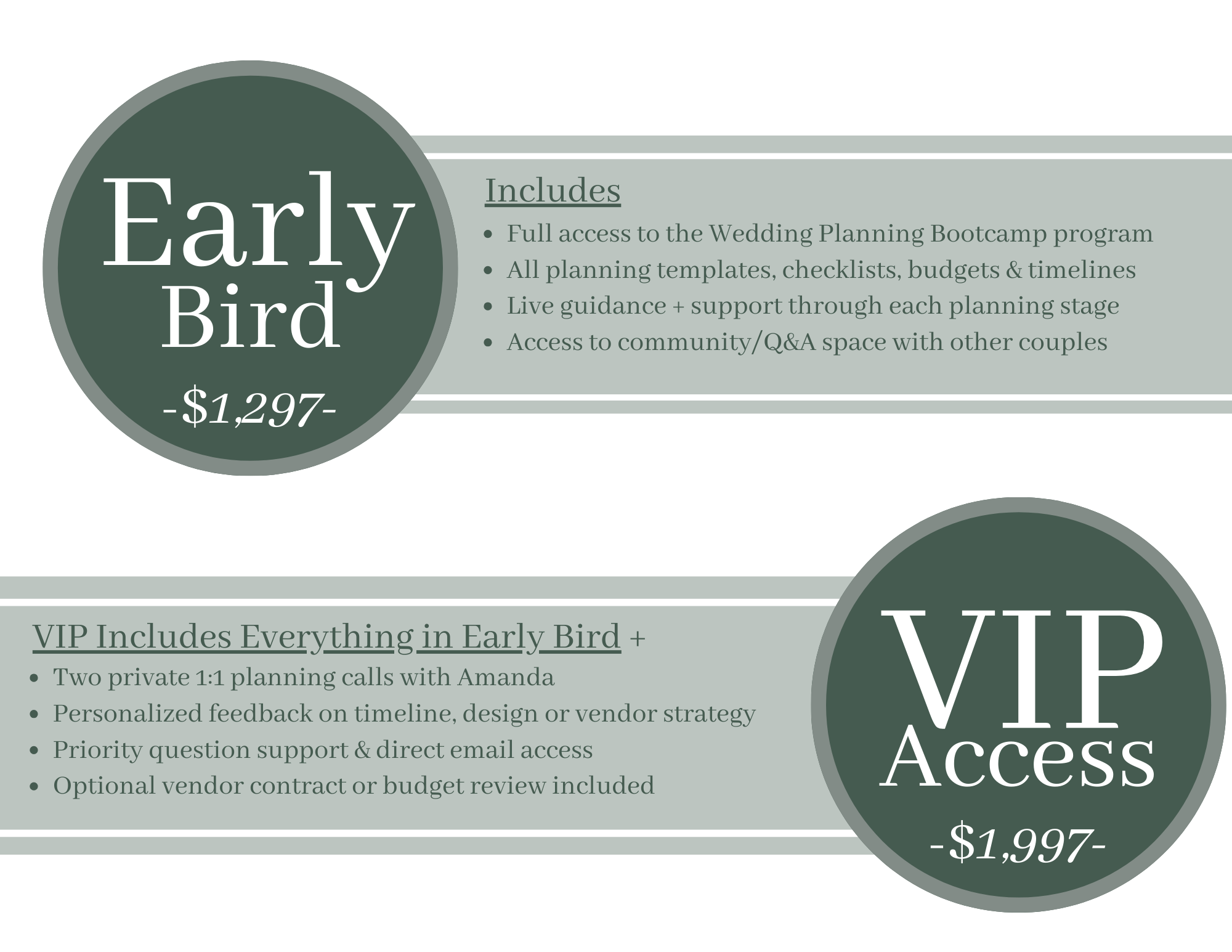 Each session follows the same rhythm: education, discussion, real-time Q&A, and actionable steps to move you forward. By the end, you’ll have not just a fully planned wedding — but the confidence and systems to make it happen smoothly.